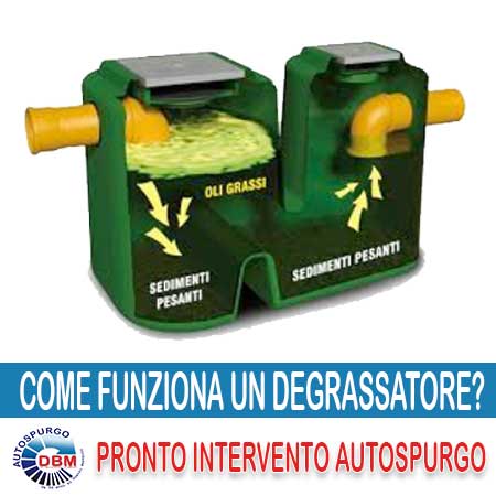 Tecnicamente i degrassatori trattano per mezzo di processi fisico/meccanici i residui delle lavorazioni alimentari di cui sopra, al fine di ottenere questo risultato i degrassatori effettuano un trattamento – che avviene per leggi fisiche – di separazione del residuo grasso oleoso dall’acqua degli scarichi, grazie infatti a vasche dove avviene una sedimentazione a seguito di decantazione, le sostanze dannose per l’ambiente si separeranno dalle acque portando cosi a termine la depurazione dell’acqua di scarico che finisce nella rete fognaria.